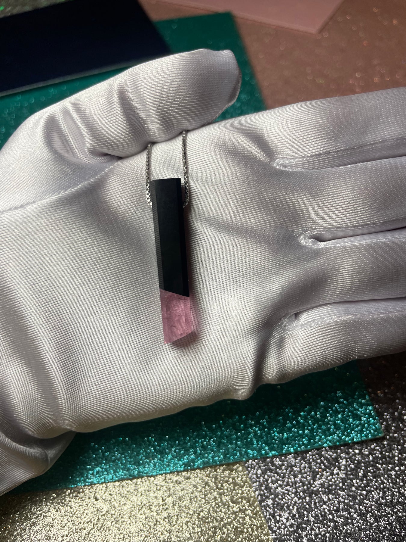Black Jade & Pink Tourmaline Intarsia Pendant